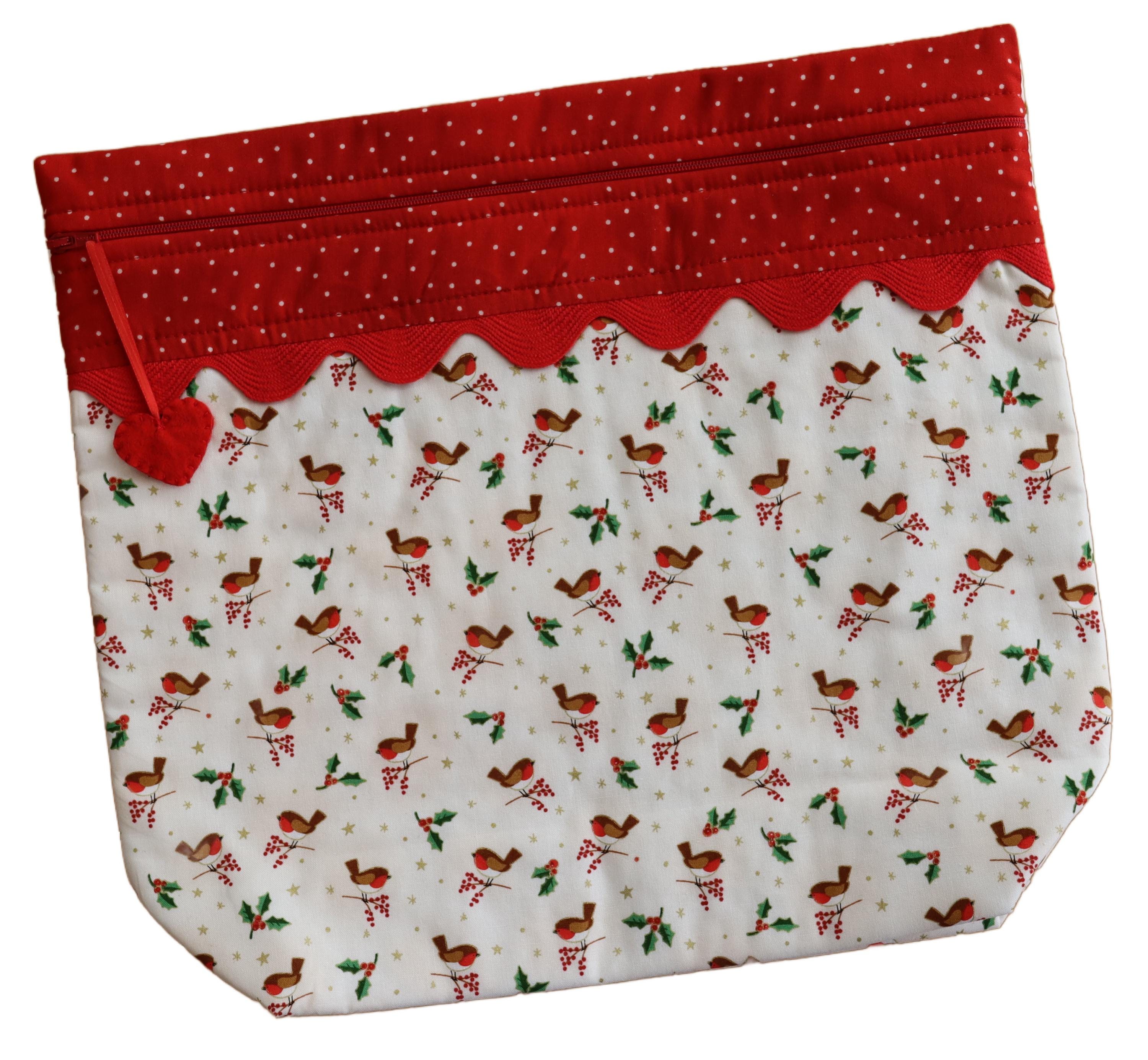 Not long ago one of my customers asked me about making a larger project bag with that would comfortably hold an 11" Qsnap frame, I started working on a new bag that would do just that! These bags are perfect for projects to take along with you as well as all kinds of crafts that you want to keep clean and away from sticky fingers or curious pets. They measure 131/2" tall by 15" wide with a 4" pleat at the bottom of the bag. These bags are padded and fully lined. Each one has a hand stitched wool felt heart for the zipper pull.