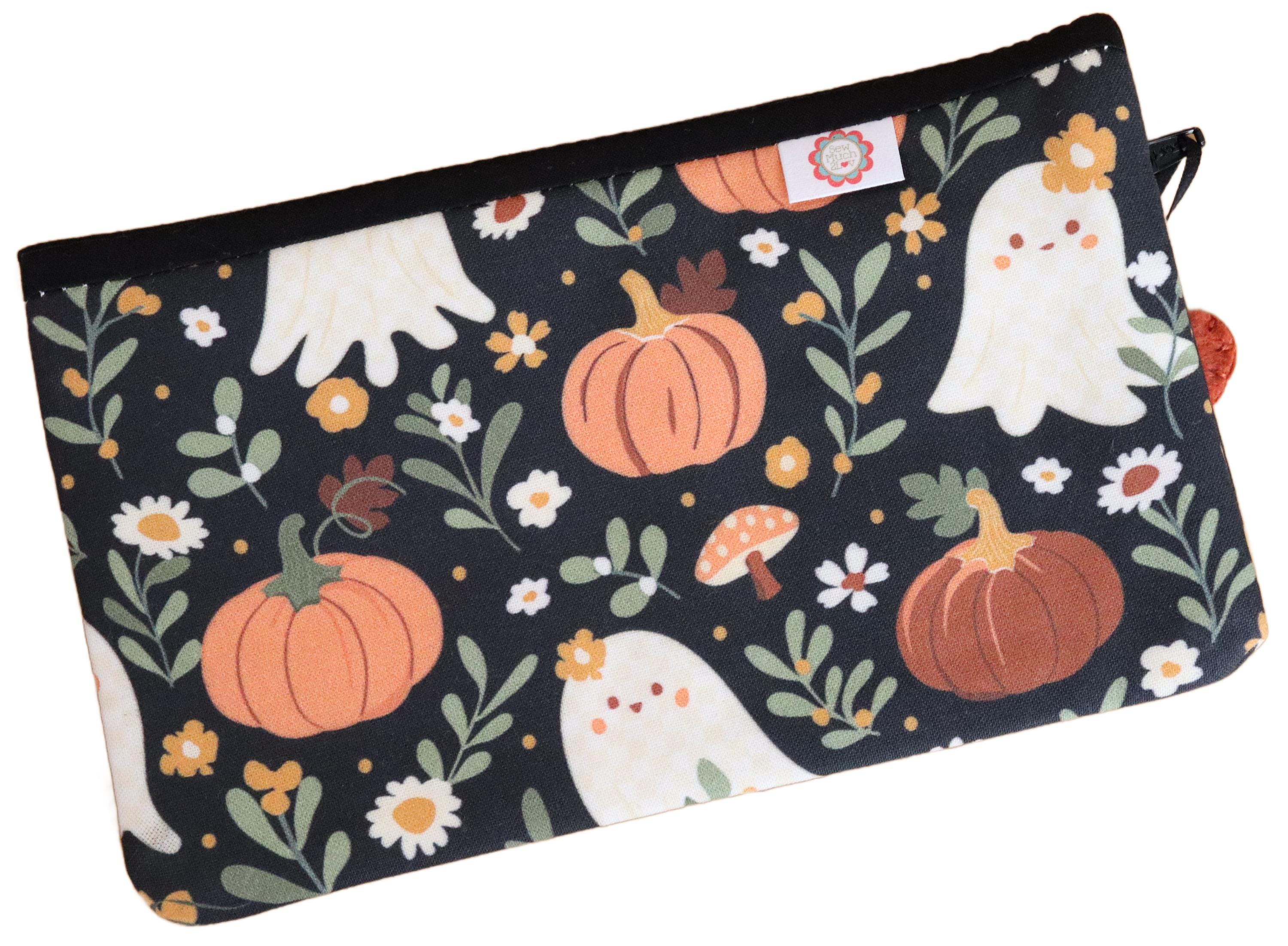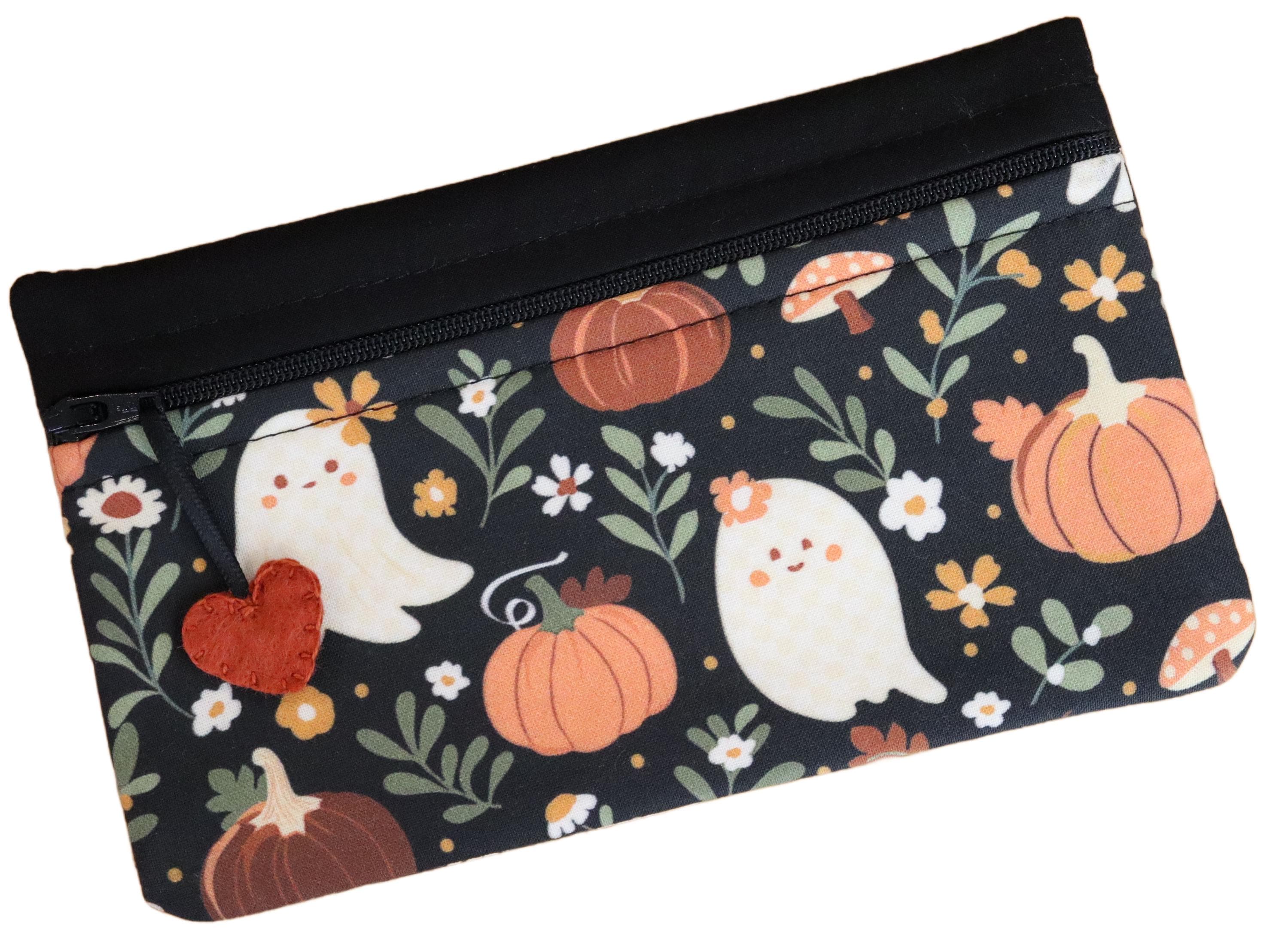 These cute little zipper bags measure approximately 7 1/2" wide by 4 1/2" tall and are a great size to hold your scissors, needles, floss and accessories. They also make great make-up bags.