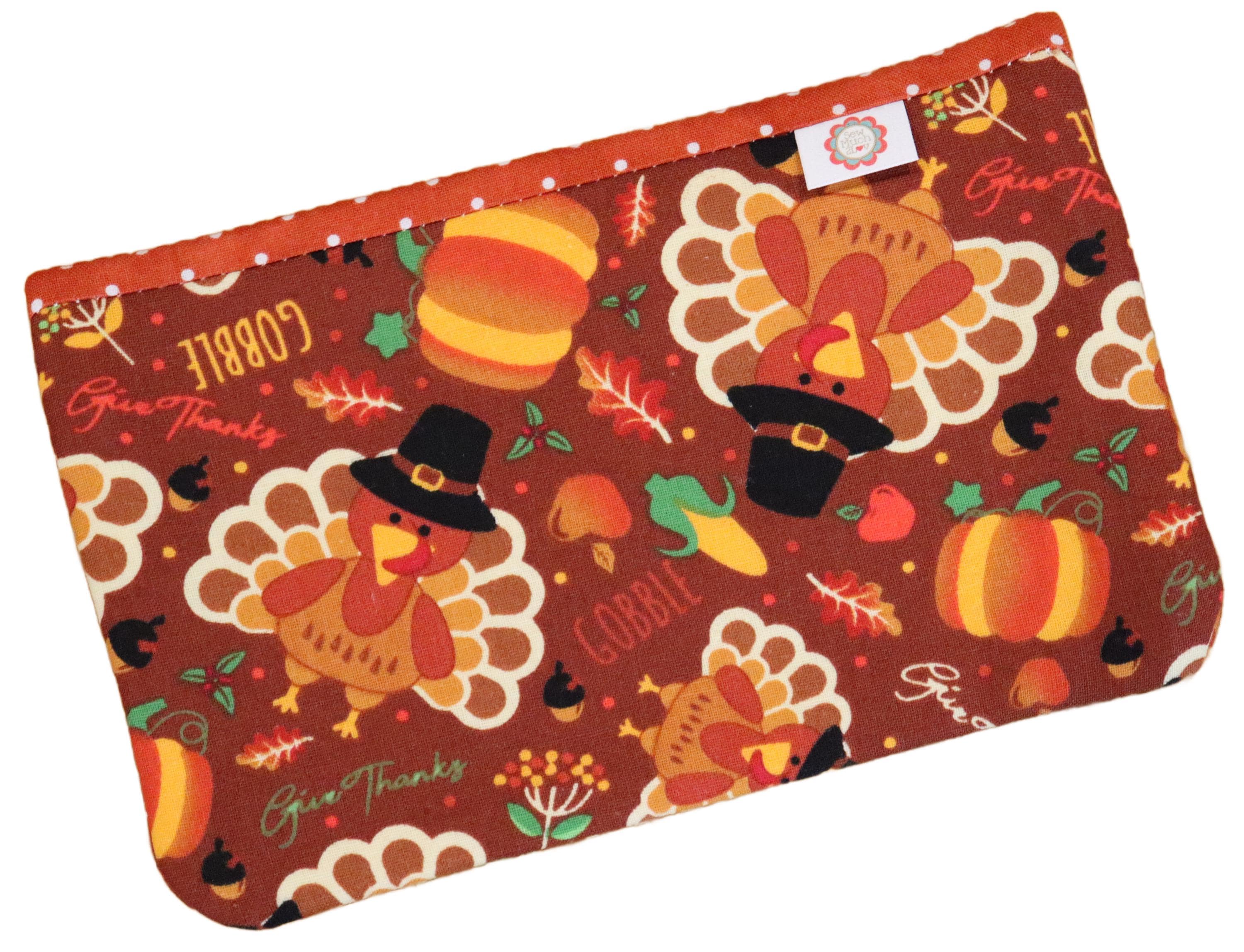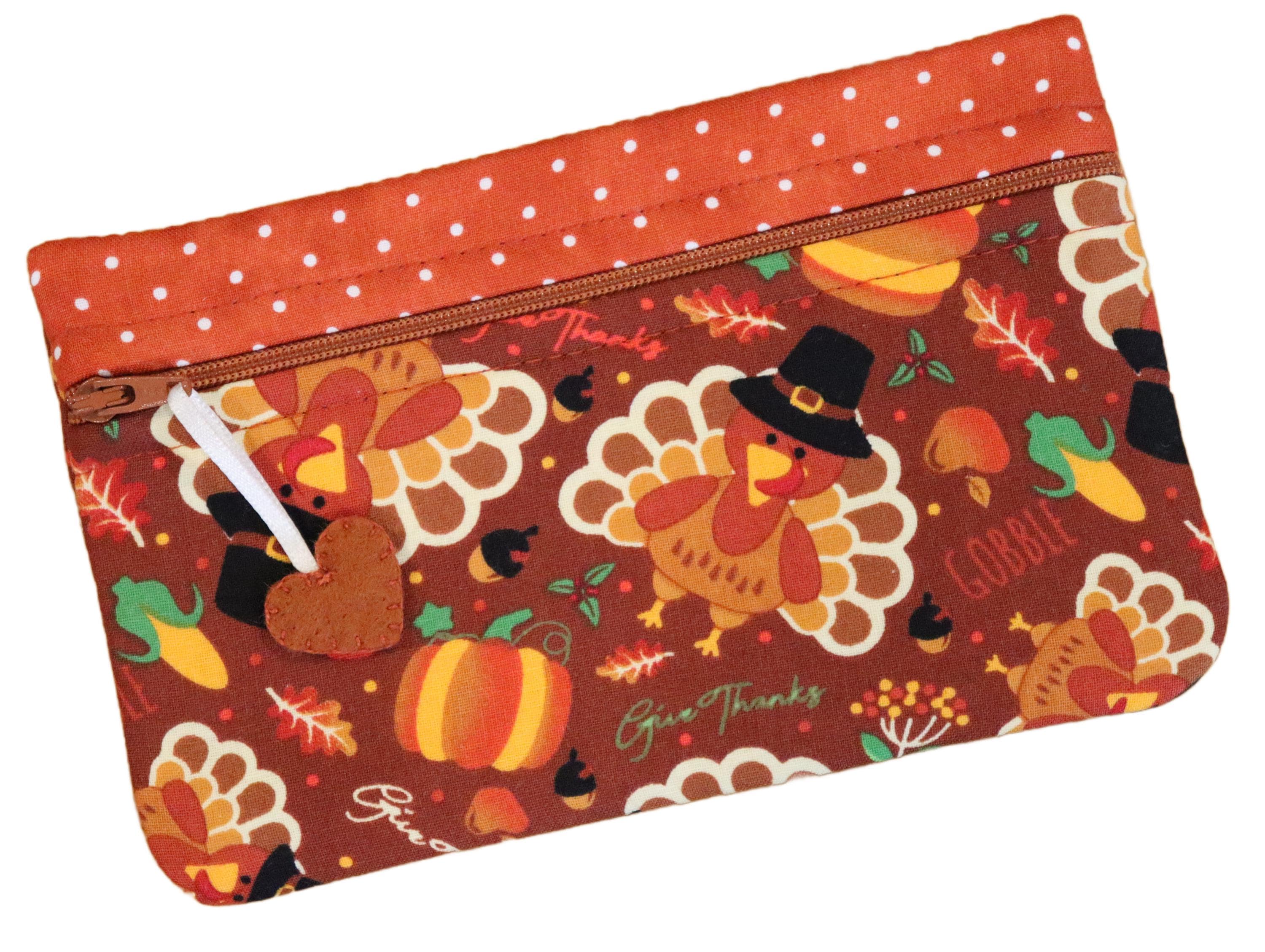 These cute little zipper bags measure approximately 7 1/2" wide by 4 1/2" tall and are a great size to hold your scissors, needles, floss and accessories. They also make great make-up bags.