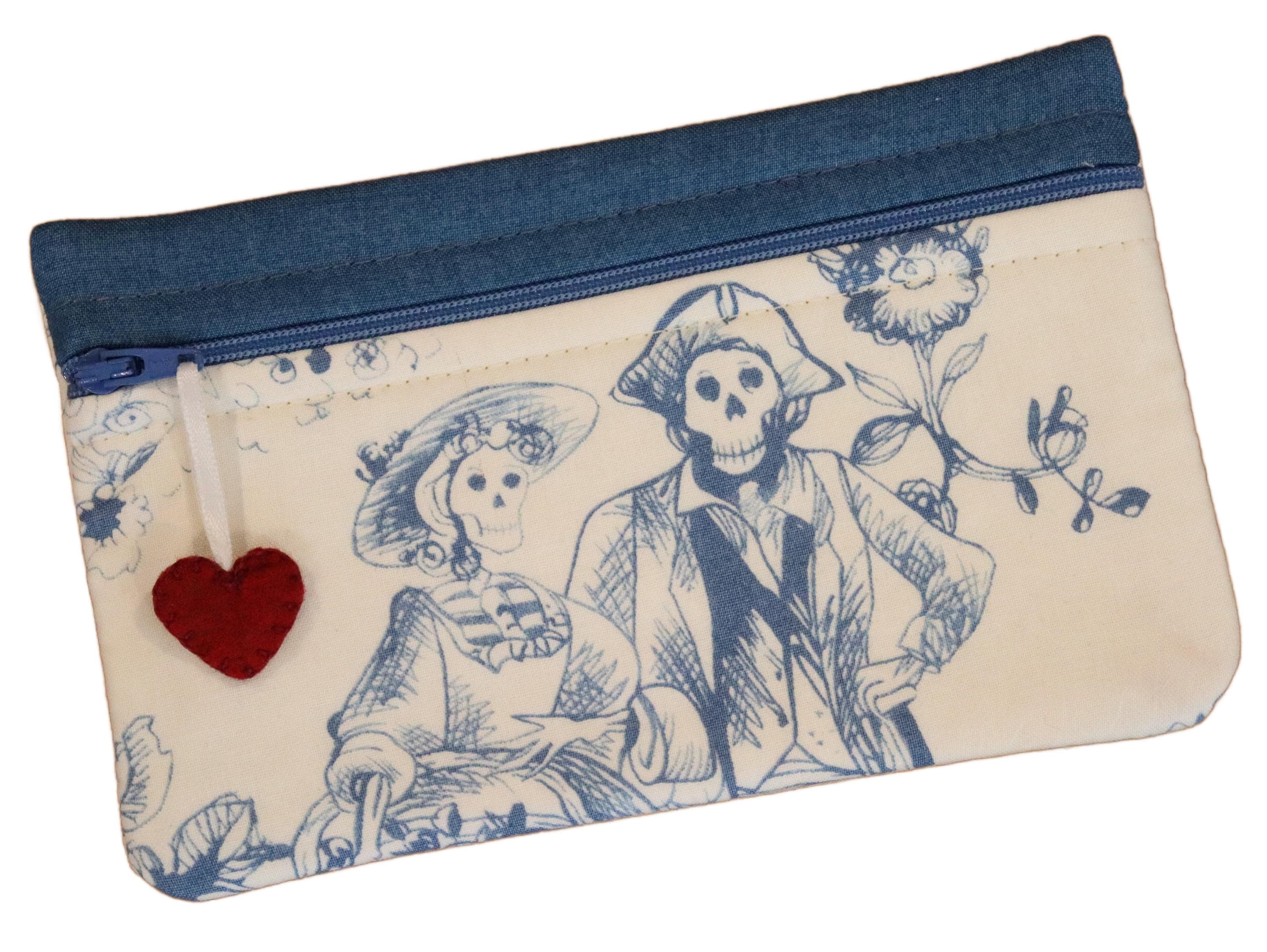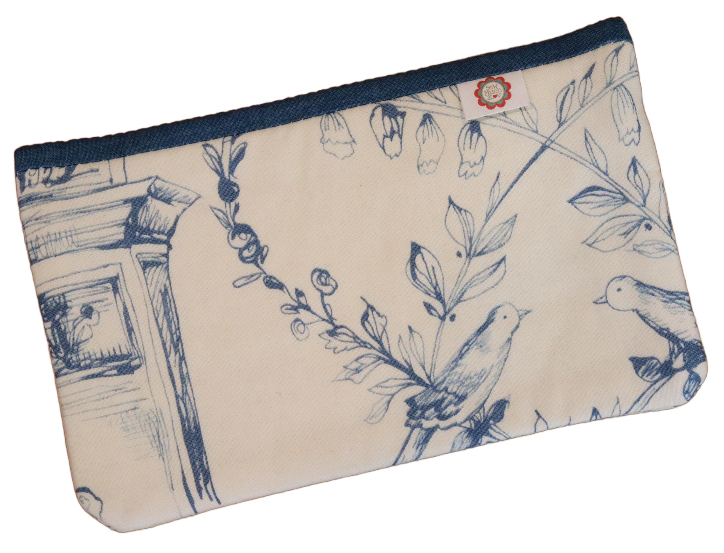 These cute little zipper bags measure approximately 7 1/2" wide by 4 1/2" tall and are a great size to hold your scissors, needles, floss and accessories. They also make great make-up bags.