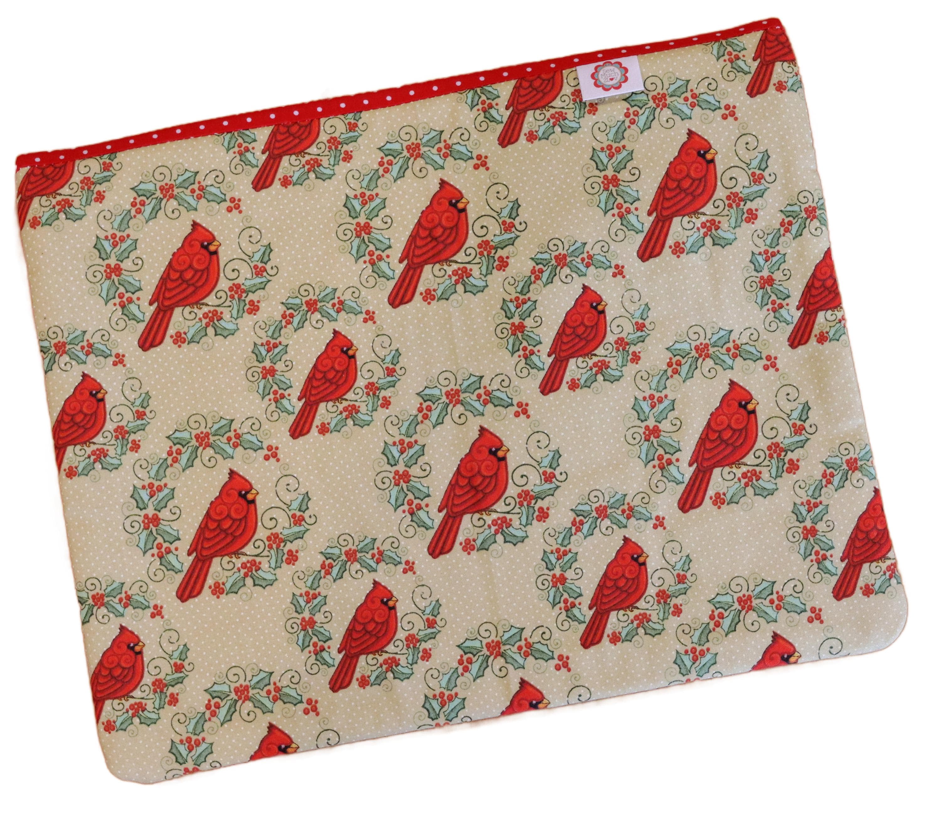These bags are perfect for projects to take along with you as well as all kinds of crafts that you want to keep clean and away from sticky fingers or curious pets. They measure 10.5" by 13" and are padded and fully lined. Each one has a hand stitched wool felt heart for the zipper pull.