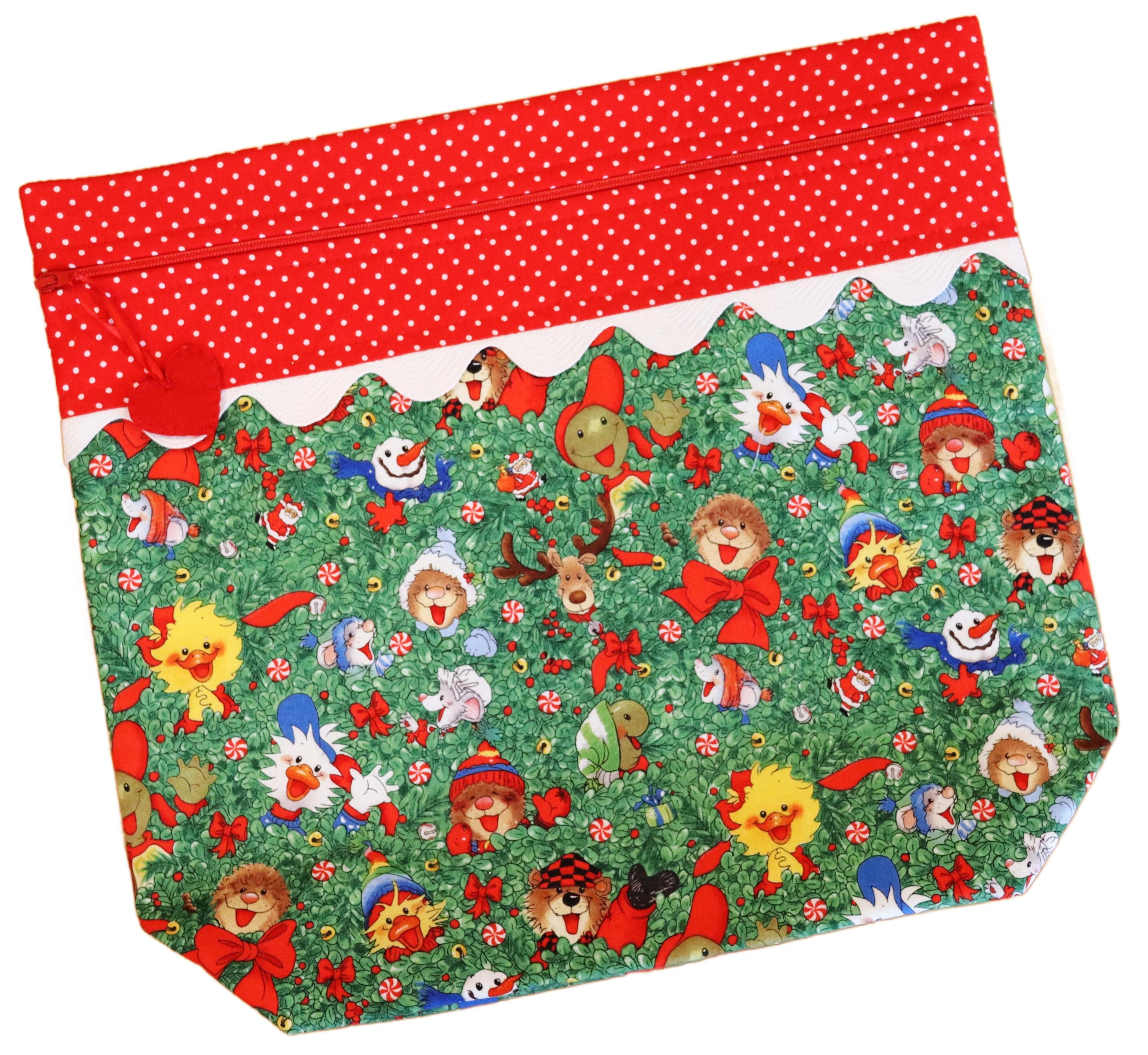 Not long ago one of my customers asked me about making a larger project bag with that would comfortably hold an 11" Qsnap frame, I started working on a new bag that would do just that! These bags are perfect for projects to take along with you as well as all kinds of crafts that you want to keep clean and away from sticky fingers or curious pets. They measure 13 1/2" tall by 15" wide with a 4" pleat at the bottom of the bag. These bags are padded and fully lined. Each one has a hand stitched wool felt heart for the zipper pull.