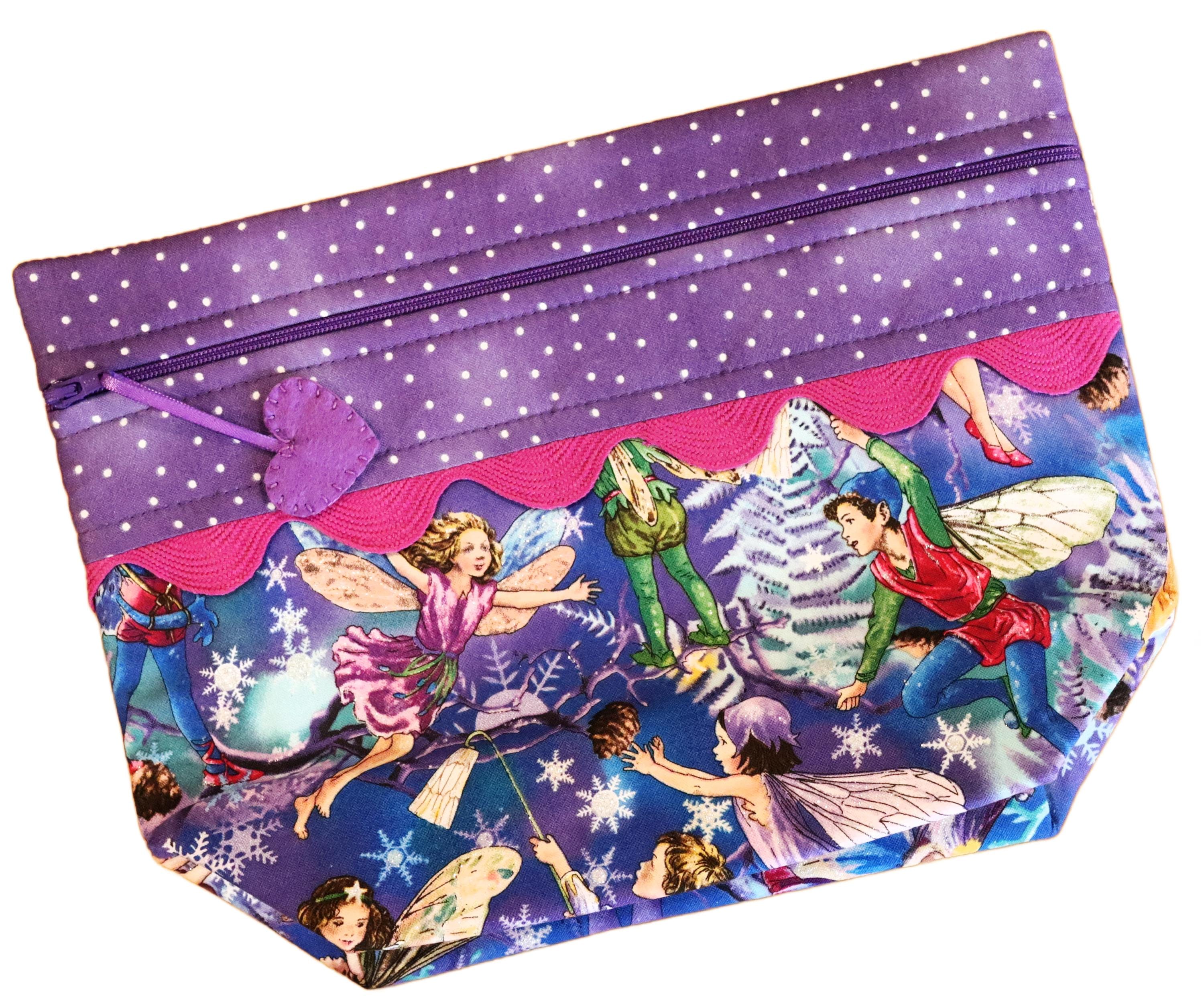 These bags are perfect for projects to take along with you as well as all kinds of crafts that you want to keep clean and away from sticky fingers or curious pets. These bags are padded and fully lined. Each one has a hand stitched wool felt heart for the zipper pull.