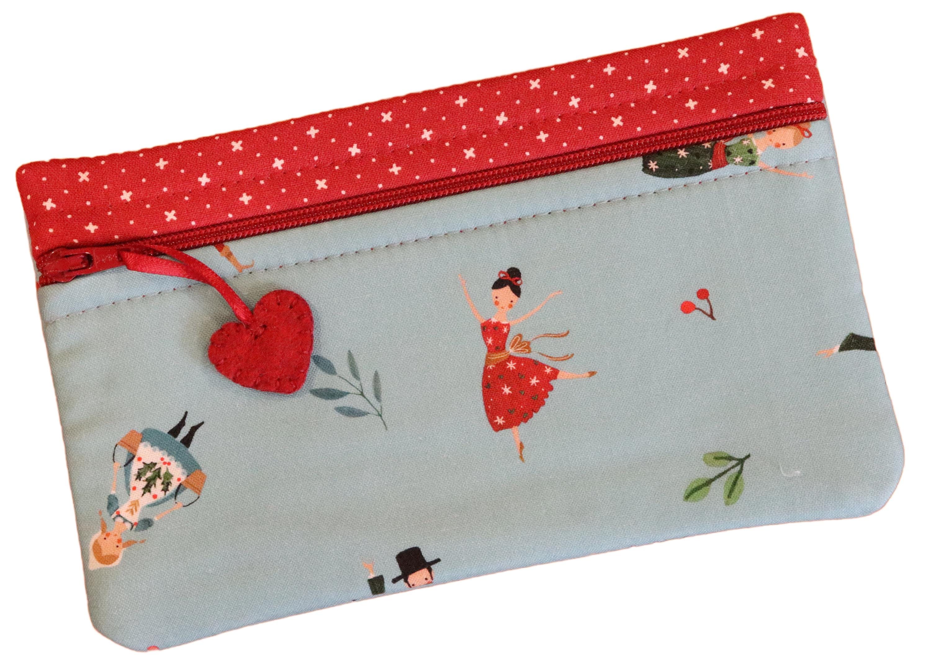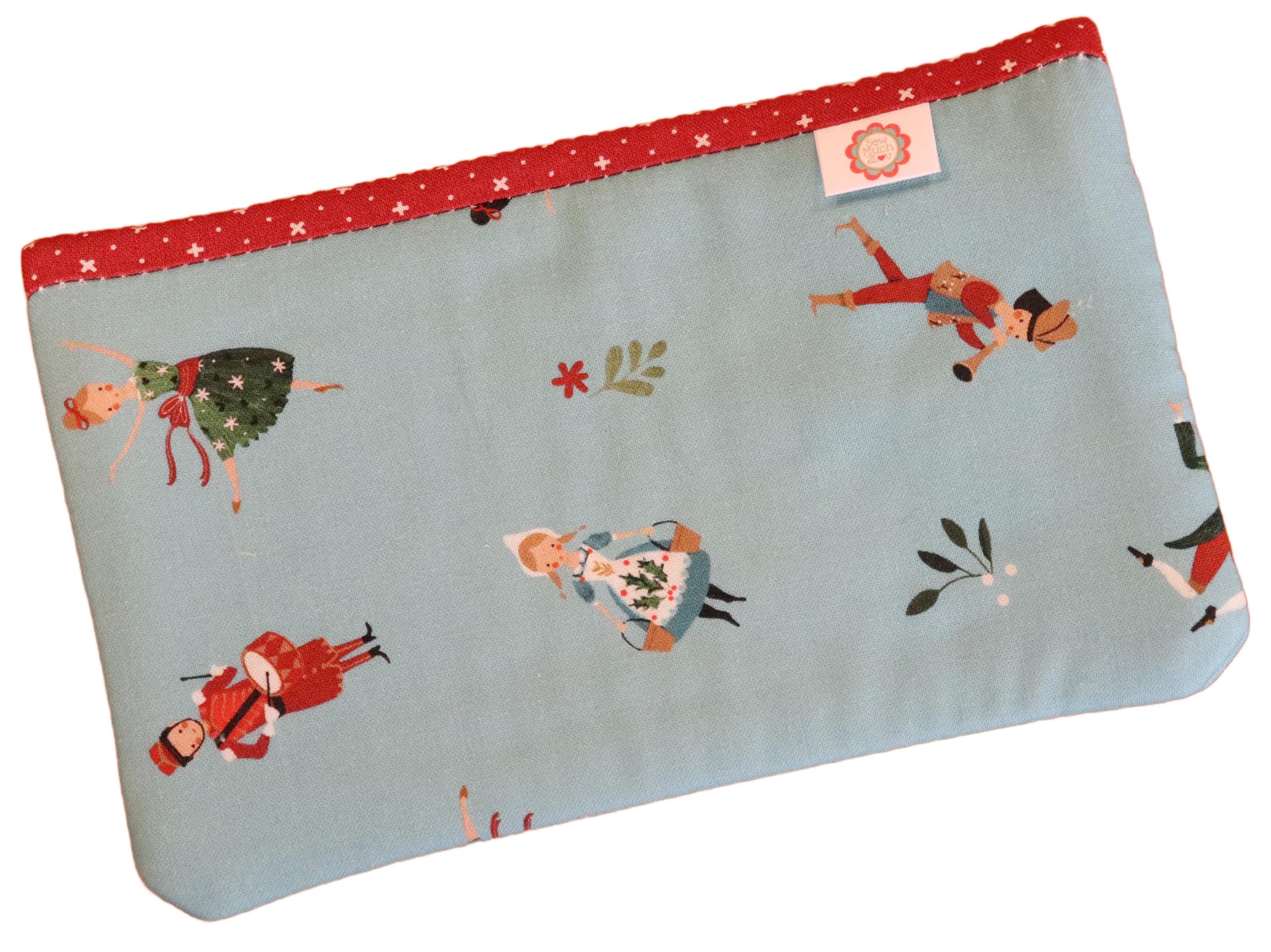 These cute little zipper bags measure approximately 7 1/2" wide by 4 1/2" tall and are a great size to hold your scissors, needles, floss and accessories. They also make great make-up bags.