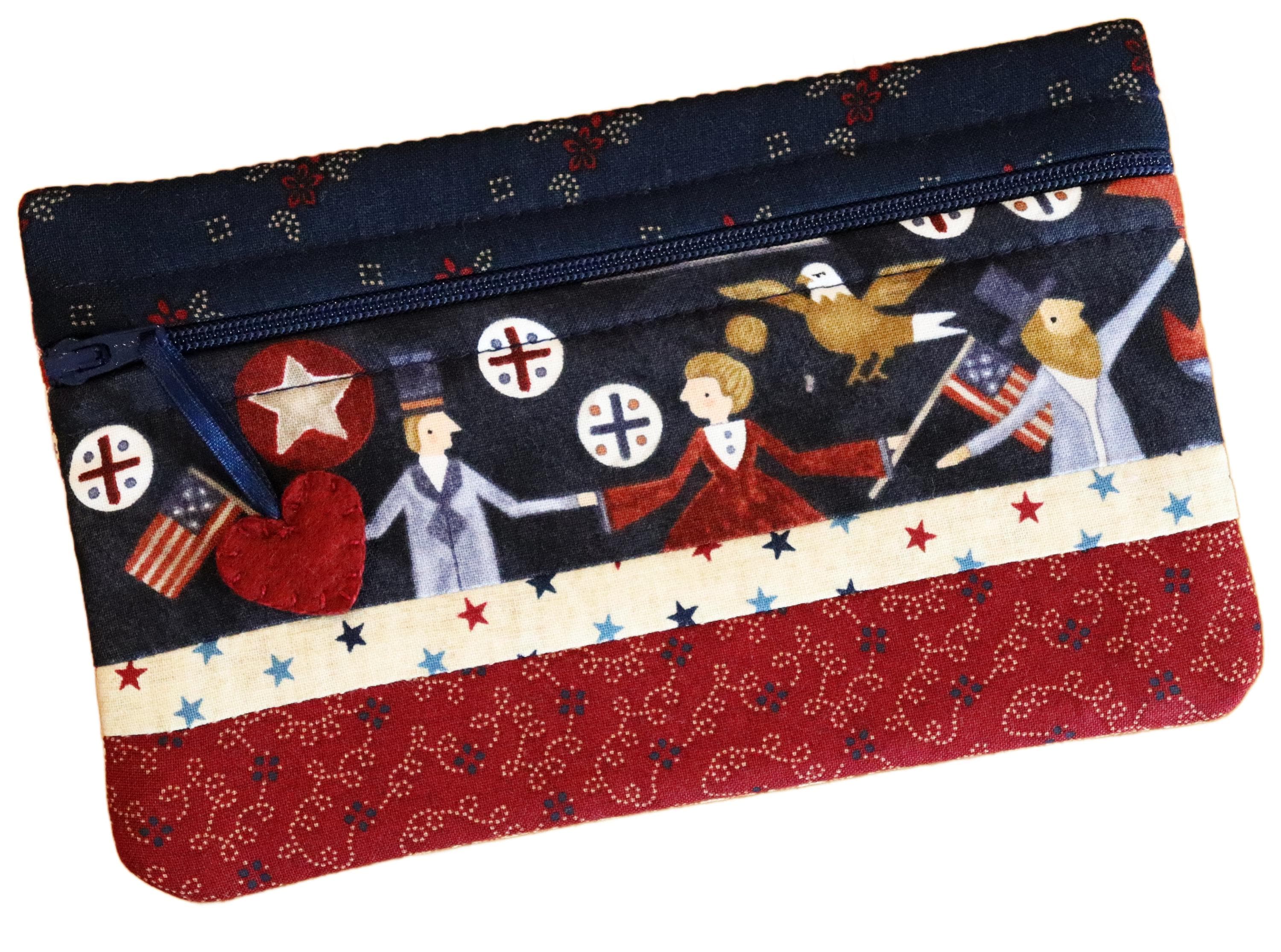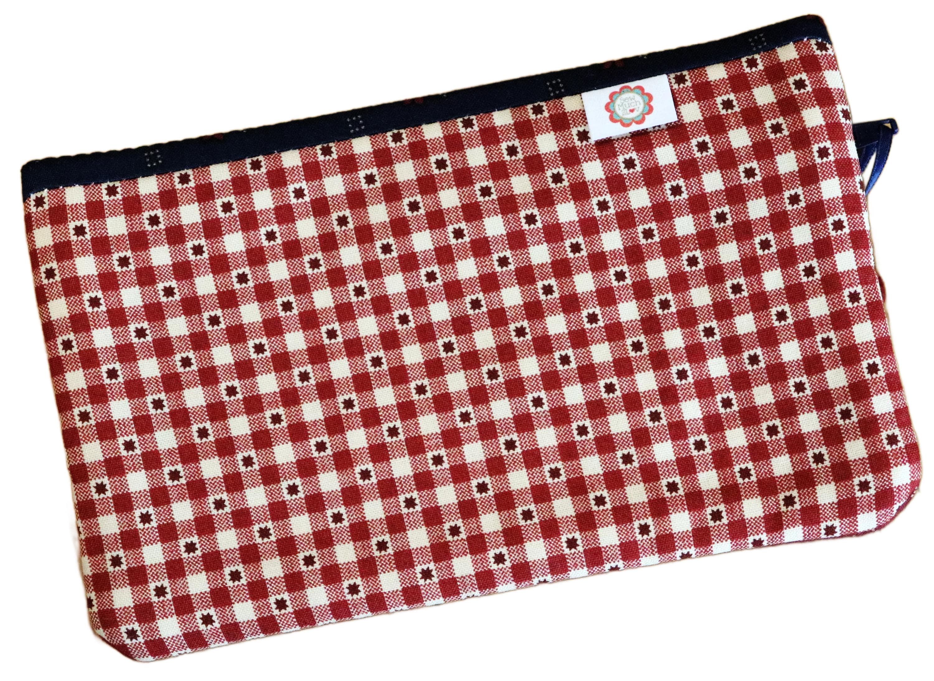 These cute little zipper bags measure approximately 7 1/2" wide by 4 1/2" tall and are a great size to hold your scissors, needles, floss and accessories. They also make great make-up bags.