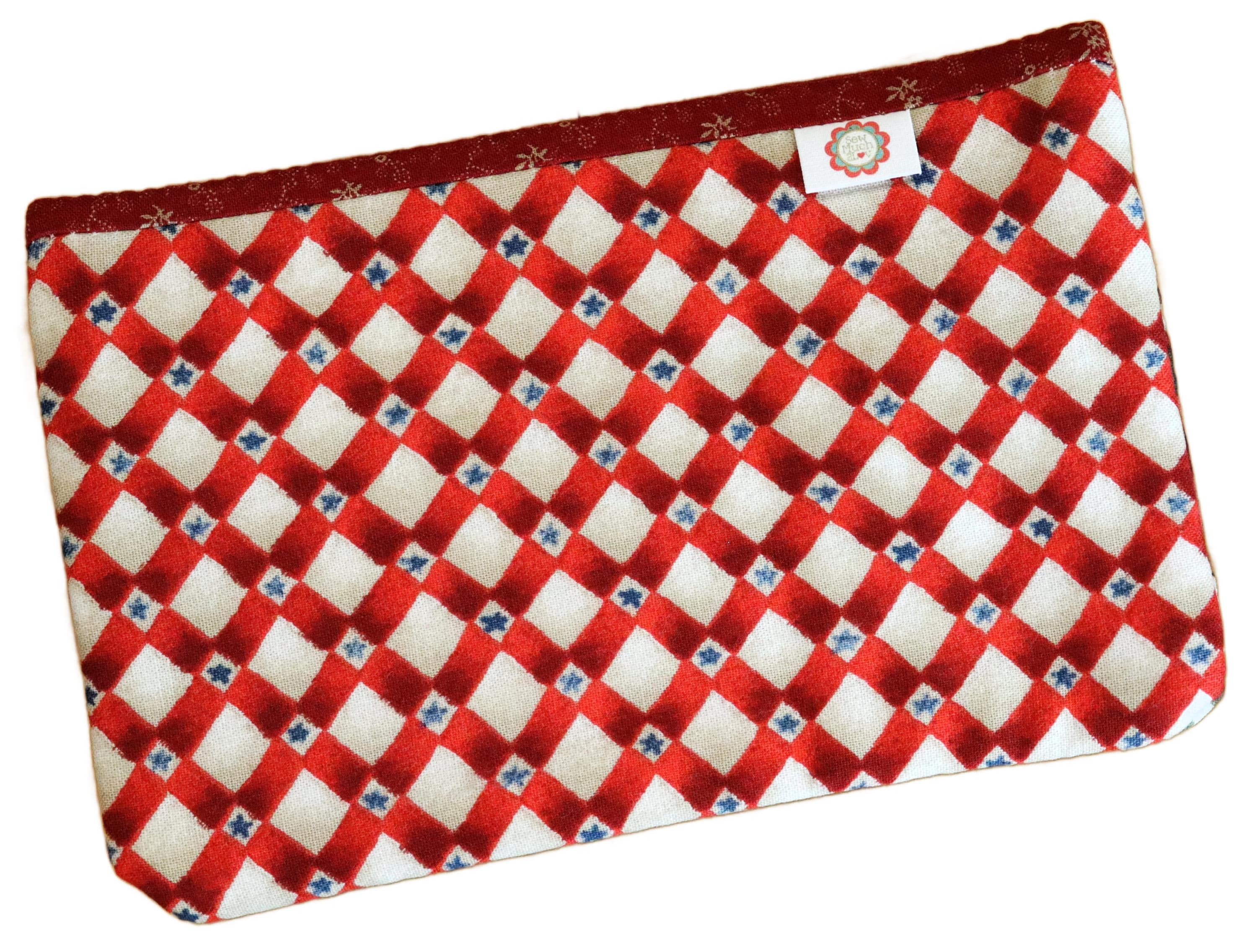 These cute little zipper bags measure approximately 7 1/2" wide by 4 1/2" tall and are a great size to hold your scissors, needles, floss and accessories. They also make great make-up bags.
