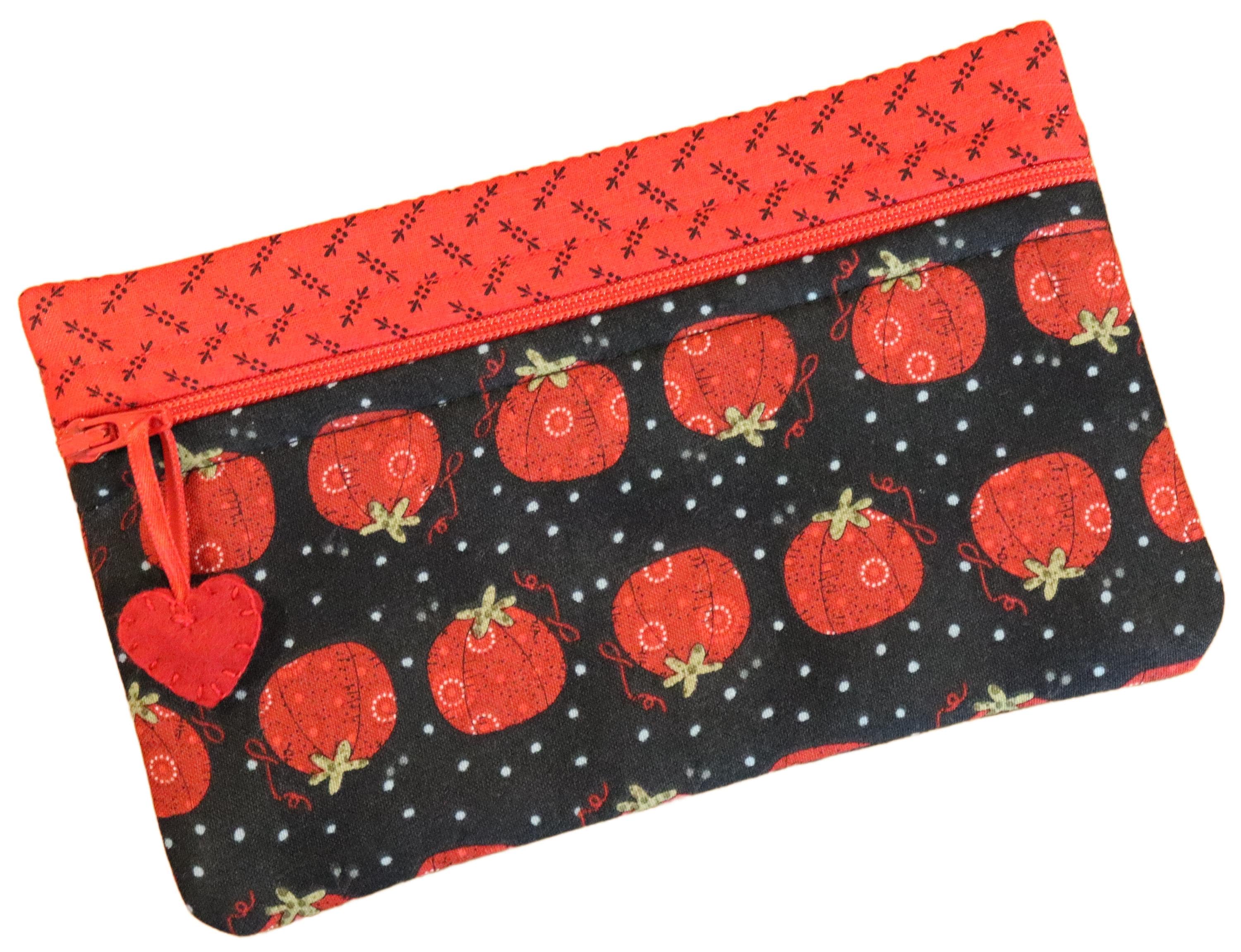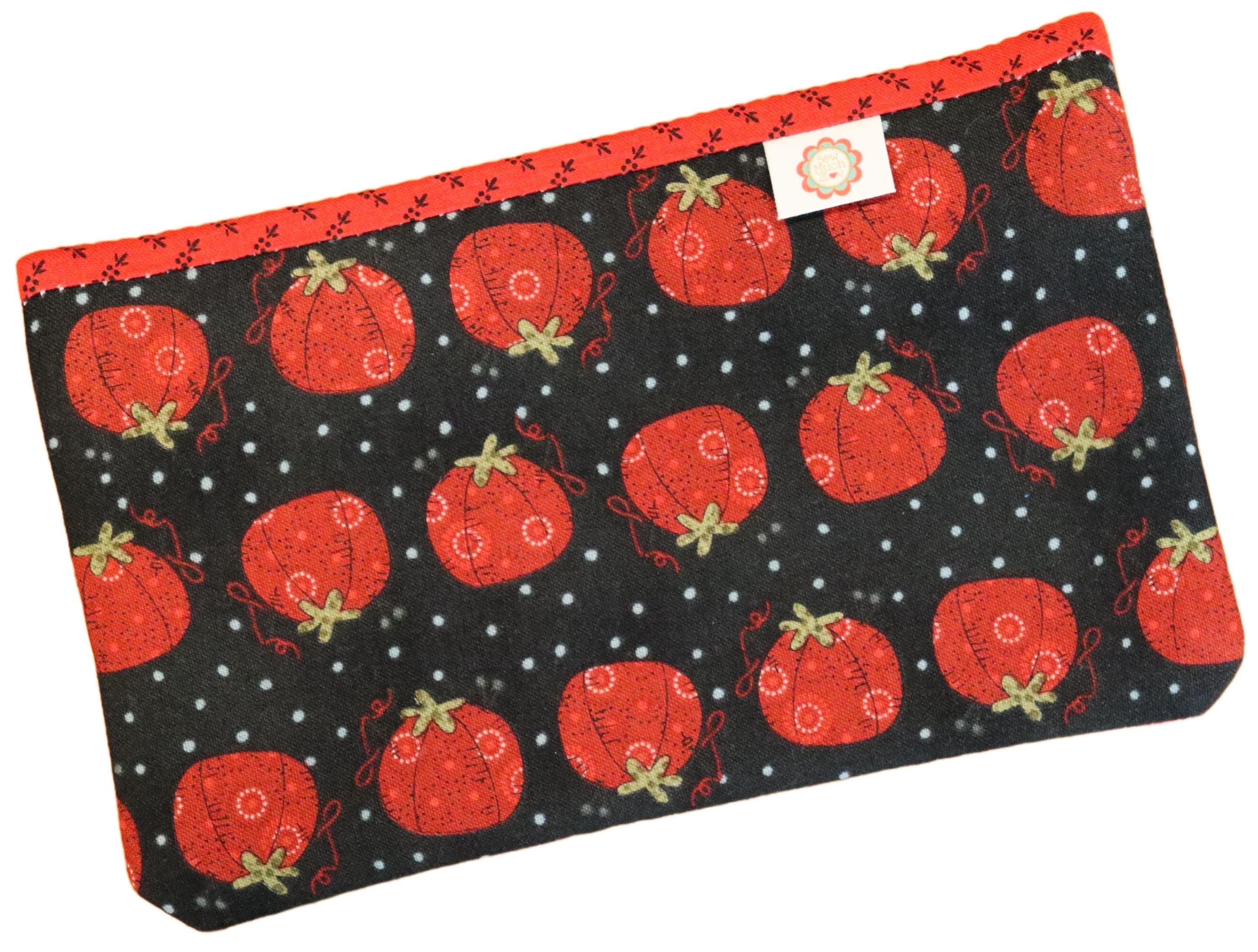 These cute little zipper bags measure approximately 7 1/2" wide by 4 1/2" tall and are a great size to hold your scissors, needles, floss and accessories. They also make great make-up bags.
