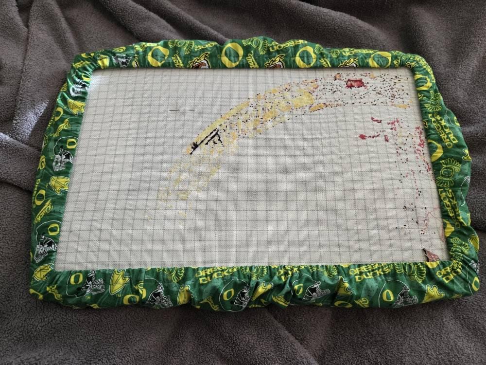 My husband, a seasoned cross-stitcher, needed a grime guard for his first project using a Q-snap frame, but we couldn't find one made from fabric that he liked. I was thrilled to find these custom-made ones. She worked with me to find something that suited him. It is so well made! And it's wide enough to keep the excess evenweave folded up and out of his way as he stitches. My husband loves it! Thank you!!