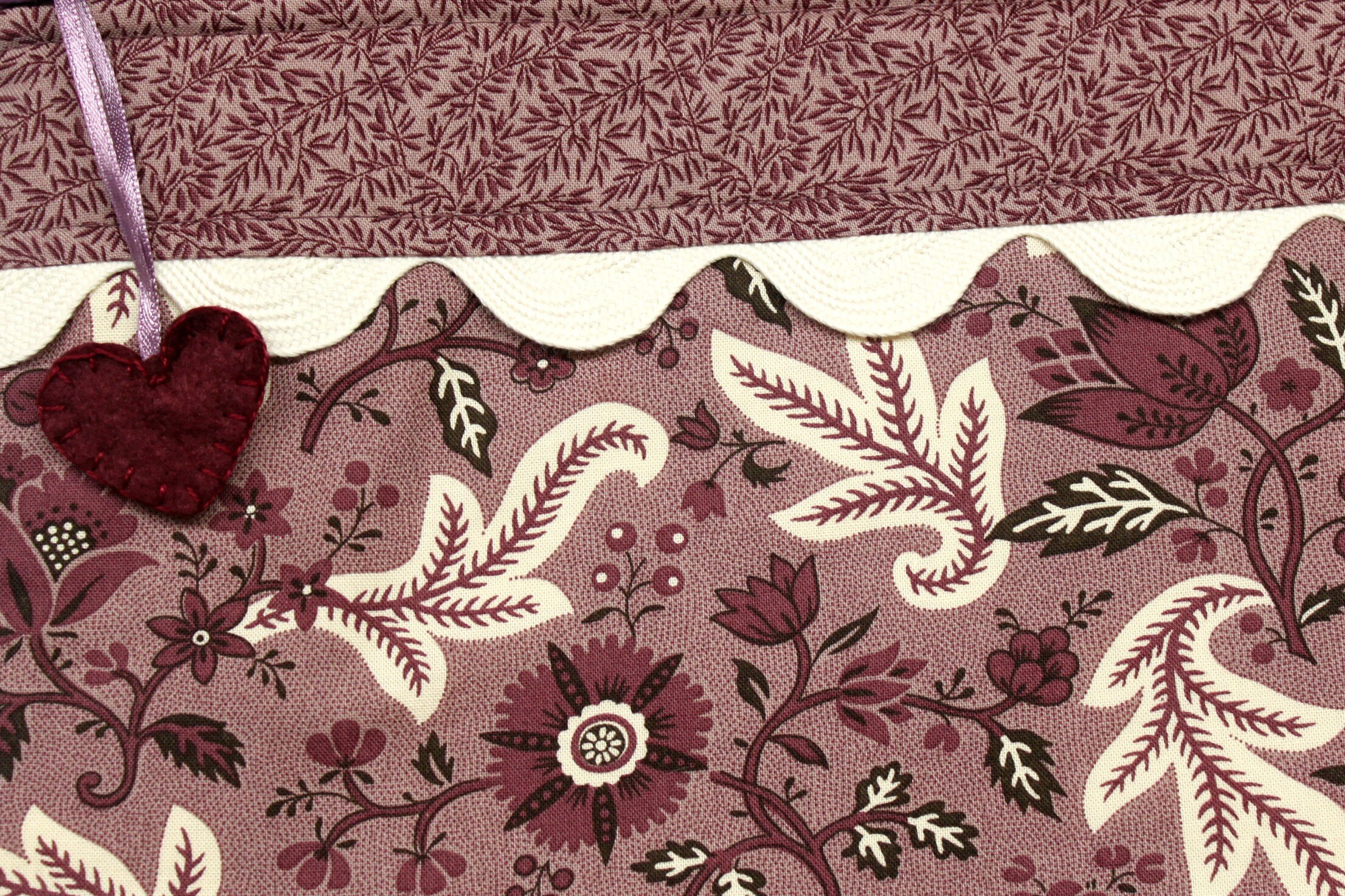 A few years ago my beloved dog, decided that after almost 5 years in my home, he wanted to eat my cross stitch supplies while I wasn't looking. He'd never done it before. But I guess it just looked yummy all of a sudden. So after he ate some over-dyed floss and hand-made buttons I decided to make myself a project bag to keep my supplies safe. Problem solved! These bags are perfect for projects to take along with you as well as all kinds of crafts that you want to keep clean and away from sticky fingers or curious pets. They measure 11" by 13 1/2" and are padded and fully lined. It will easliy hold your 8 x 8 Qsnap as well as your supplies. Each one has a hand stitched wool felt heart for the zipper pull.