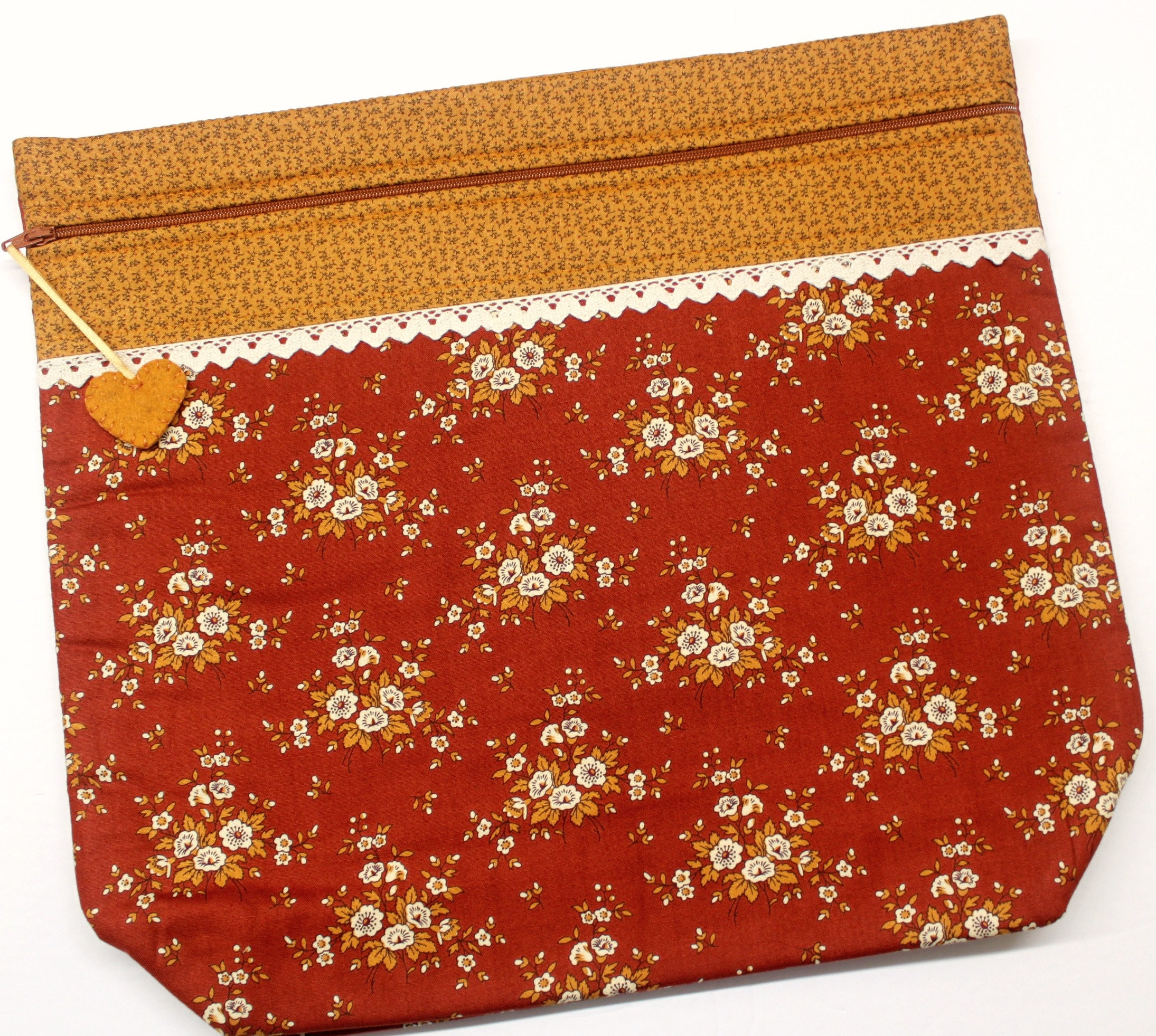Not long ago one of my customers asked me about making a larger project bag with that would comfortably hold an 11" Qsnap frame, I started working on a new bag that would do just that! These bags are perfect for projects to take along with you as well as all kinds of crafts that you want to keep clean and away from sticky fingers or curious pets. They measure 131/2" tall by 15" wide with a 4" pleat at the bottom of the bag. These bags are padded and fully lined. Each one has a hand stitched wool felt heart for the zipper pull.