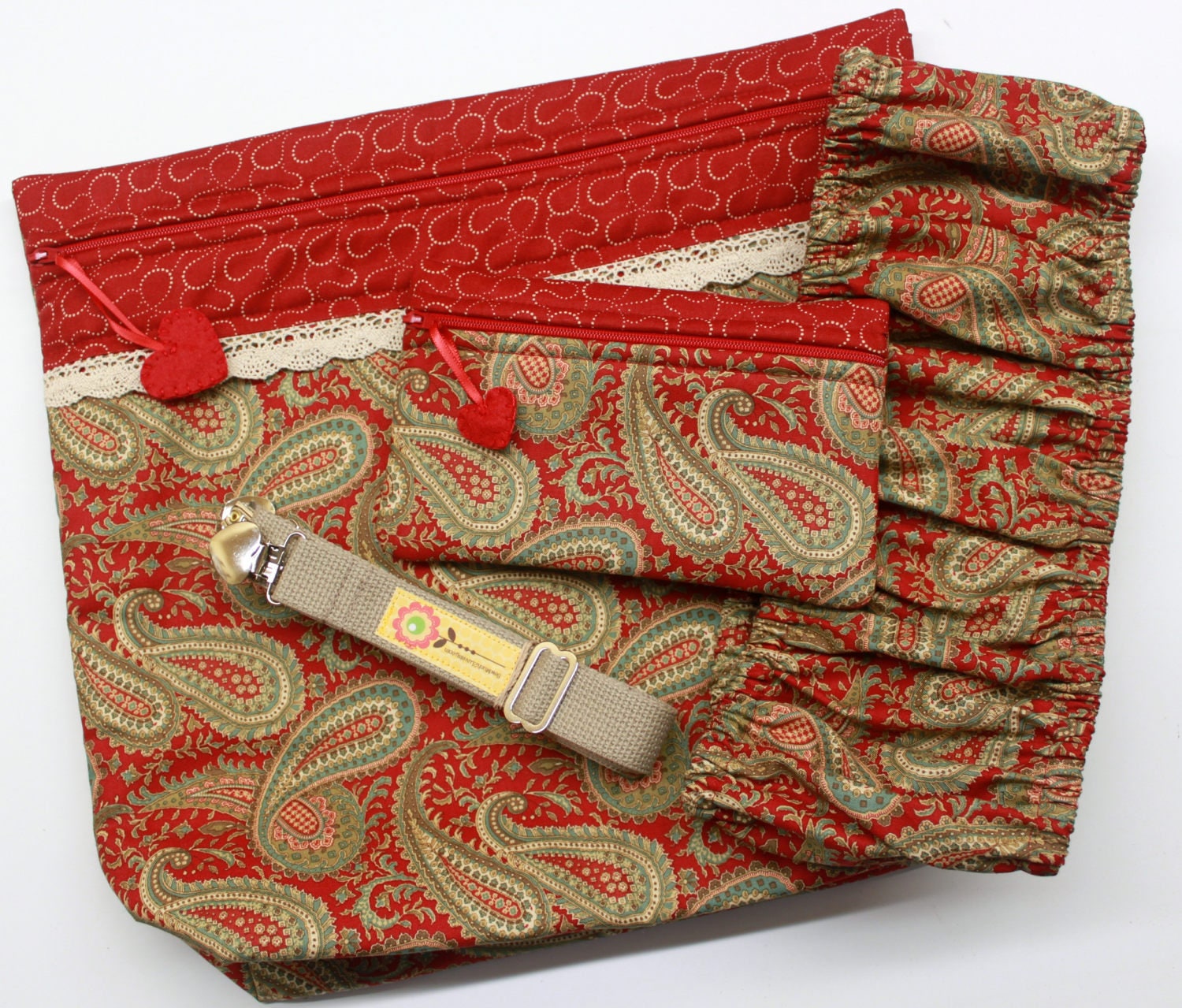 These bags are perfect for projects to take along with you as well as all kinds of crafts that you want to keep clean and away from sticky fingers or curious pets. They measure 10.5" by 13" and are padded and fully lined. Each one has a hand stitched wool felt heart for the zipper pull.