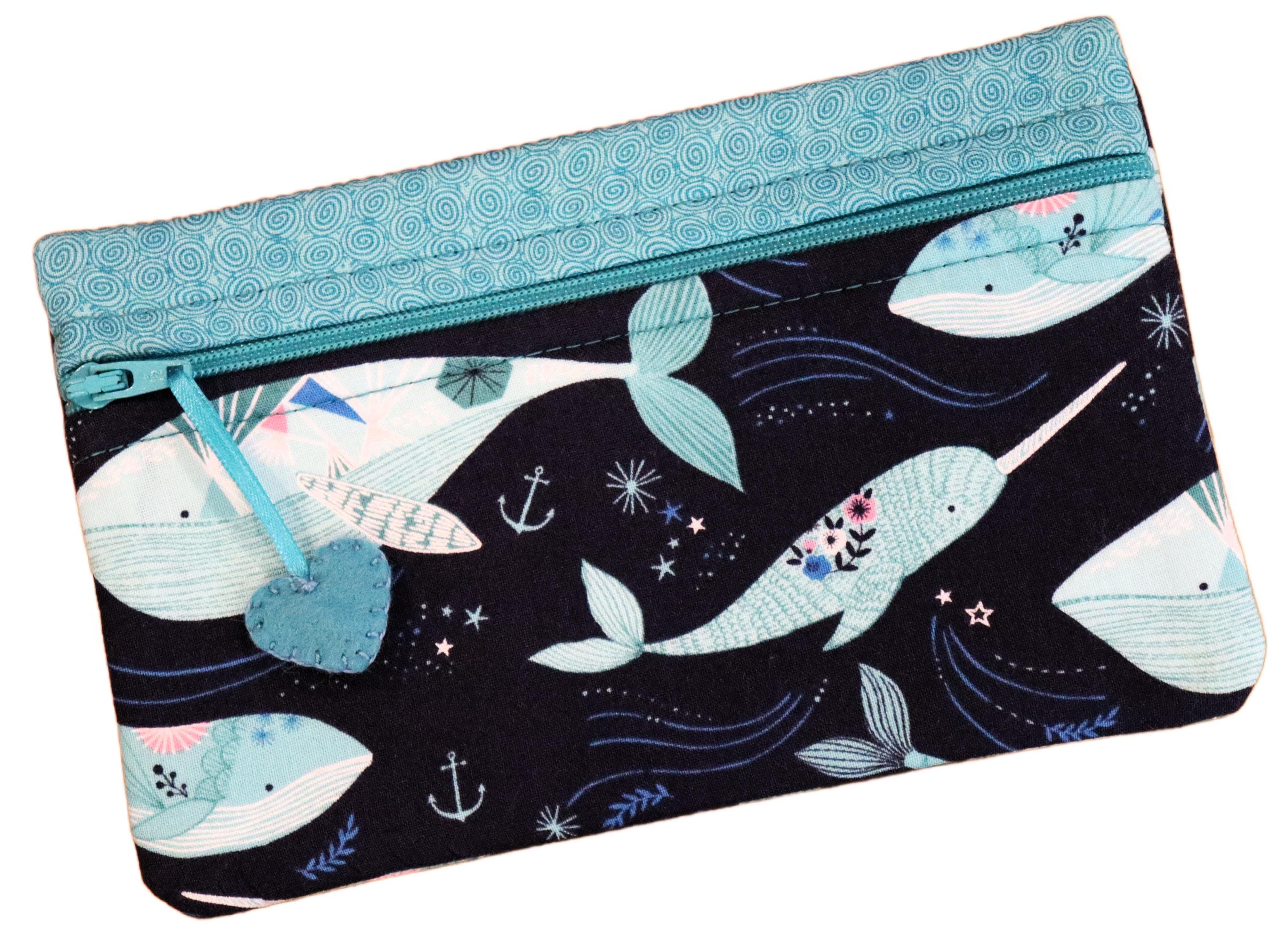 These cute little zipper bags measure approximately 7 1/2" wide by 4 1/2" tall and are a great size to hold your scissors, needles, floss and accessories. They also make great make-up bags.